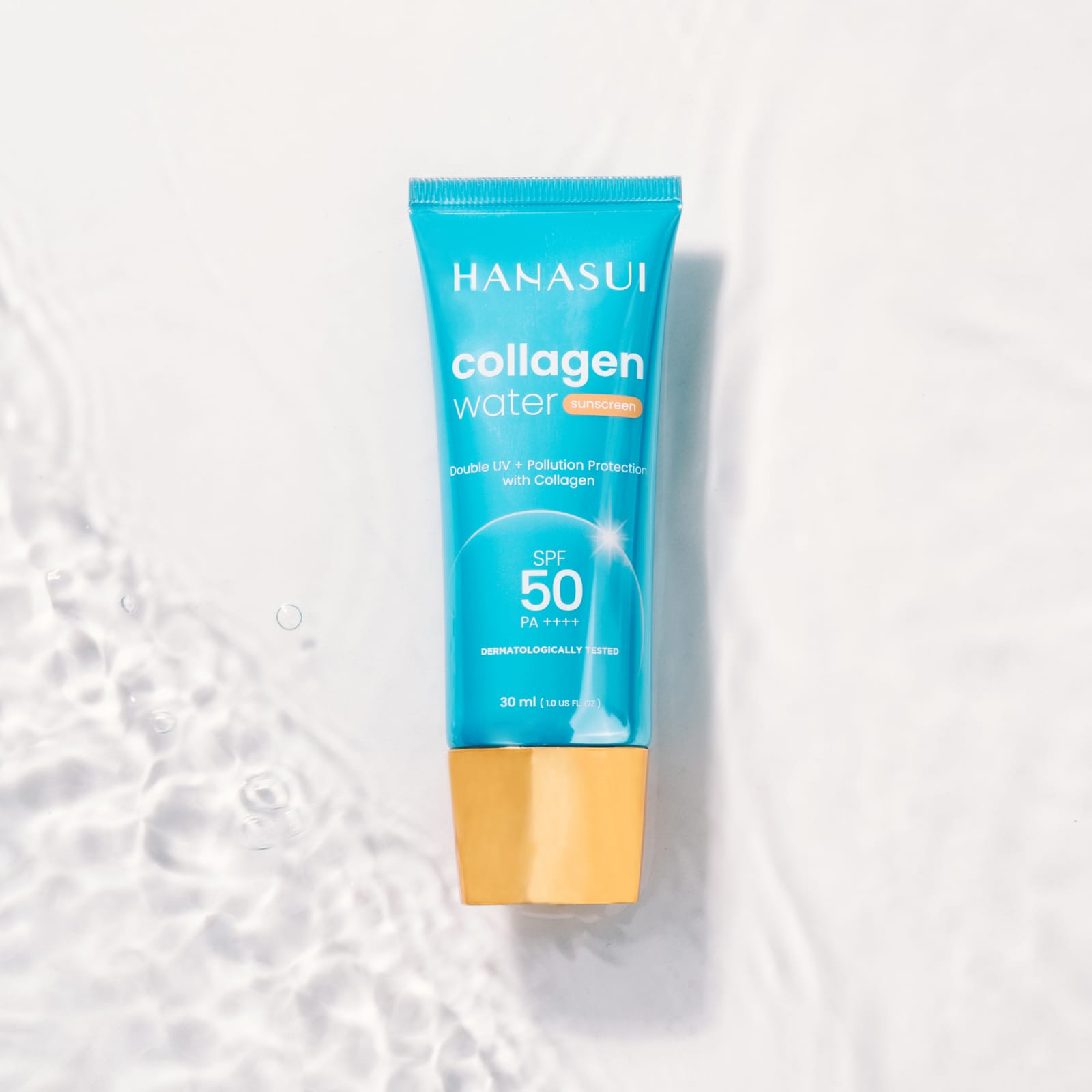 Hanasui yang merupakan salah satu brand kosmetik lokal yang di produksi oleh PT Eka Jaya Internasional memiliki produk sunscreen dengan SPF 50 yang didalamnya juga terdapat kandungan Collagen Water.