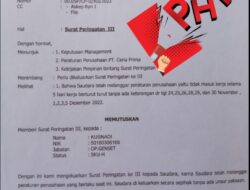 “Secara garis besar SP terbagi menjadi tiga Yaitu SP pertama,kedua dan ketiga masing-masing berlaku selama enam bulan atau sesuai dengan perjanjian kerja,Jika dalam kurun waktu enam bulan perilaku karyawan tersebut membaik,Itu artinya ia sudah terbebas dari SP pertama.Namun bila masa SP pertama belum habis dan ia melakukan pelanggaran berbeda, Perusahaan dapat memberikan SP kedua hingga ke tiga.Dari hal diatas tentunya kita akan laporkan ke pihak Disnaker kabupaten Bengkayang. Pungkasnya.