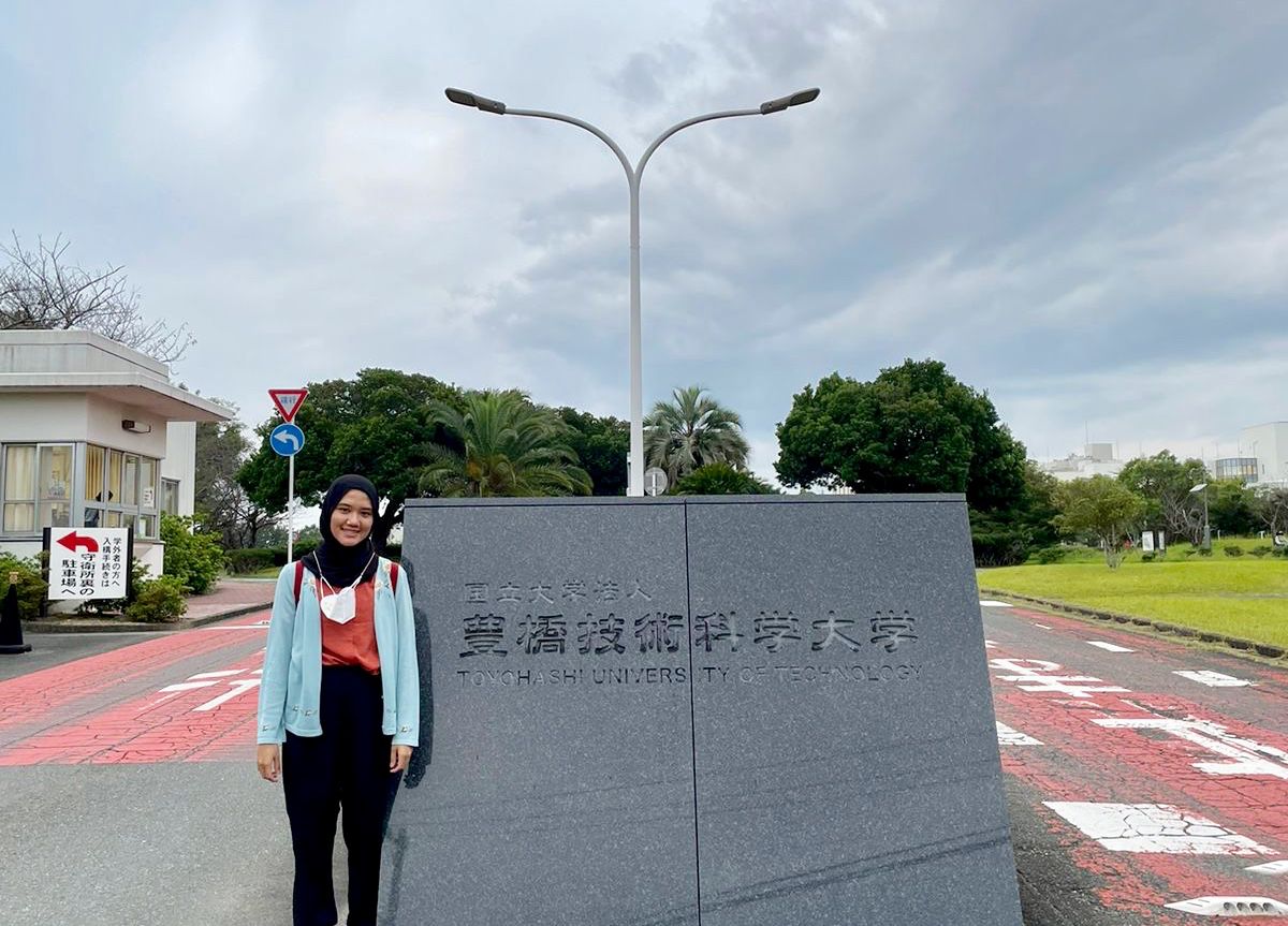 Penelitian tak hanya digetolkan melalui CoE, namun juga oleh mahasiswa. “Selama berkuliah, kami memang didorong untuk aktif melakukan riset. Itu sebabnya, dengan bimbingan dosen ahli maupun dosen praktisi industri, kami mendapat kesempatan melakukan riset di Toyohashi University of Technology, di Toyohashi, Aishi, Jepang,” ujar Khansa Dzahabiyya Wahyuddin. Bersama rekannya Hilwa Silmi Azzahra, Khansa akan meneliti tentang mikroplastik pada minuman dan air sungai di Jepang selama tiga bulan dengan beasiswa penuh dari Japan Student Services Organization.